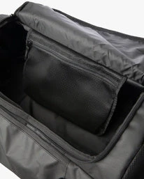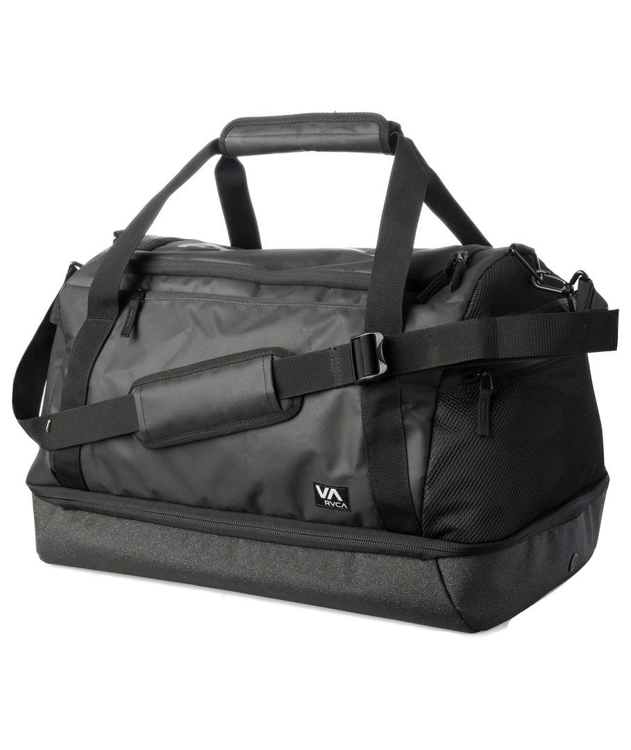 The VA gear bag combines versatility and innovative design, so you can pack all the essentials. Made form coated polyester canvas with suregrip coating at the bottom for added durability, this men’s duffle bag, part of our VA Sport Collection, features multiple zippered compartments with an interior removable mesh pouch, a mesh zippered pocket at the interior flap and a large zippered storage compartment at the bottom for all your needs. Built with dual top handles with padding for a comfortable grip and a removable padded shoulder strap with adjustable webbing, this men’s duffle is finished off with reflective RVCA logo prints at the top flap, side and front. Inspired by our mma and jiu jitsu ambassadors, this gym and training essential is part of our RVCA Sport collection, a premium line of workout clothes and accessories for all your sessions. Â