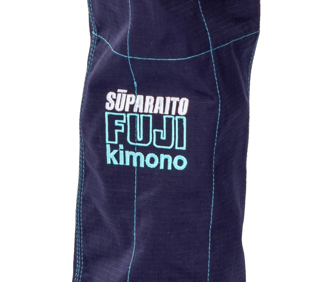 This gi’s design features contrast Stitching on Jacket & Pants, a Suparaito logo on the jacket, skirt, and pants. FUJI logos on Sleeve, Back of Neck, and Pants. Lastly, and outside taping on the skirt.