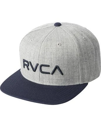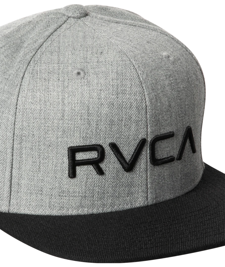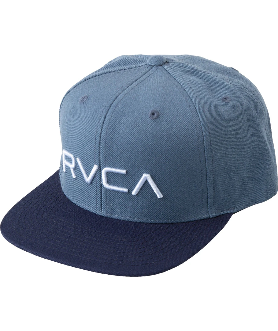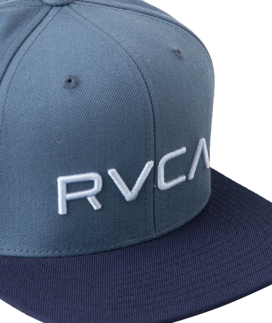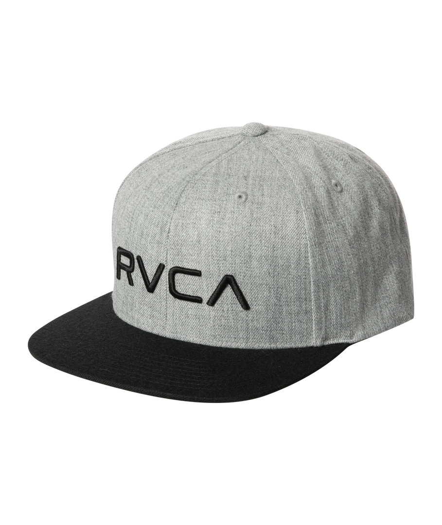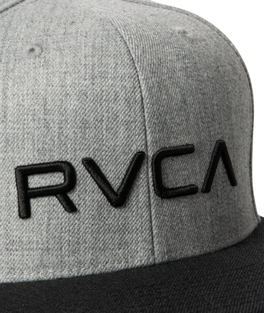 EXPECT MELLOW STYLING ON THE RVCA TWILL SNAPBACK, A CLASSIC 6 PANEL HAT WITH CLEAN FINISHES. MID FIT CONSTRUCTION AND PREMIUM BODY HAS BEEN FINISHED WITH AN EMBROIDERED LOGO AT THE FRONT AND VA EMBROIDERY AT BACK.