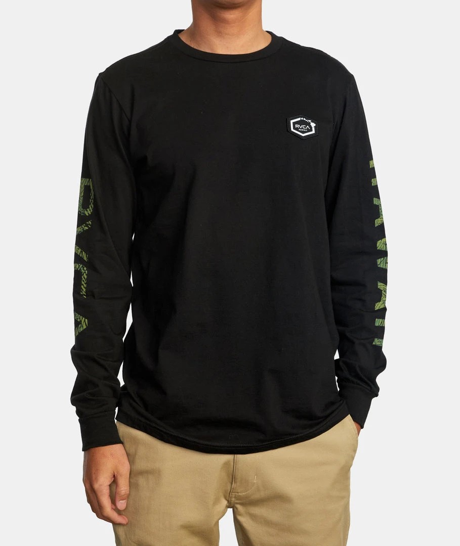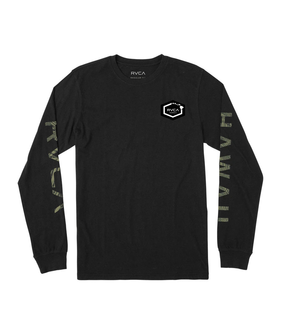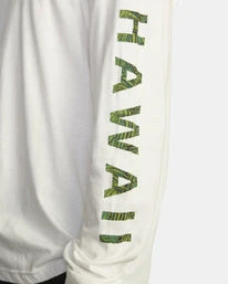 Clean design, with understated style, the Hawaii Hex Long Sleeve T-shirt offers it all. This men’s lightweight, crew/neck t-shirt is made from combed cotton jersey and features graphics at the sleeves and a RVCA Hawaii Woven label at the chest for a bold look. Â