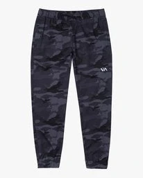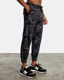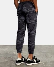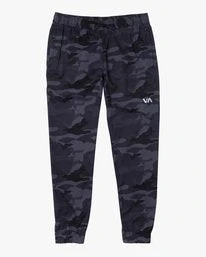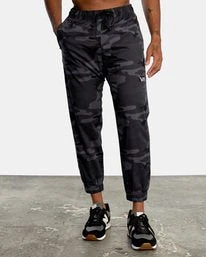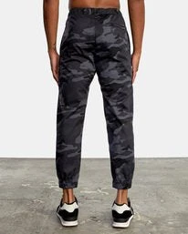 Merging a jogger cut with RVCA’s Performance spectrum pant, the cuffed update continues to deliver on athletic function and street-worthy design. Made from 4-way stretch fabric for limitless range of motion, the athletic pant finds balance with a slim, tailored fit and closures at the front and back, a tech drawcord, and small printed RVCA and VA logos. Â