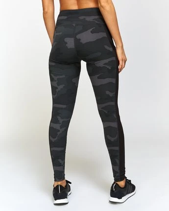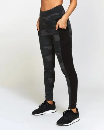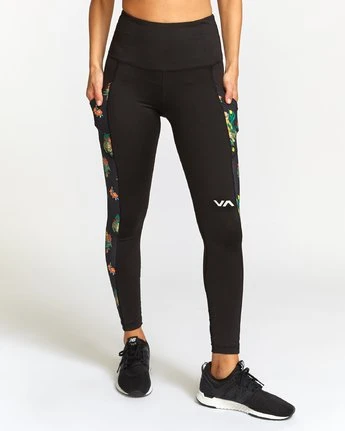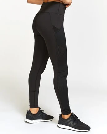 Designed to stay in place, however you choose to move, the RVCA Atomic High Rise Legging delivers on performance function and flattering lines. Made with a contoured waist, the high waisted leggings are trimmed with contrast pipping and a pocketed side panel. Keeping athletic function in mind, the fitted pant is made from moisture-wicking, 4-way stretch fabric. Â