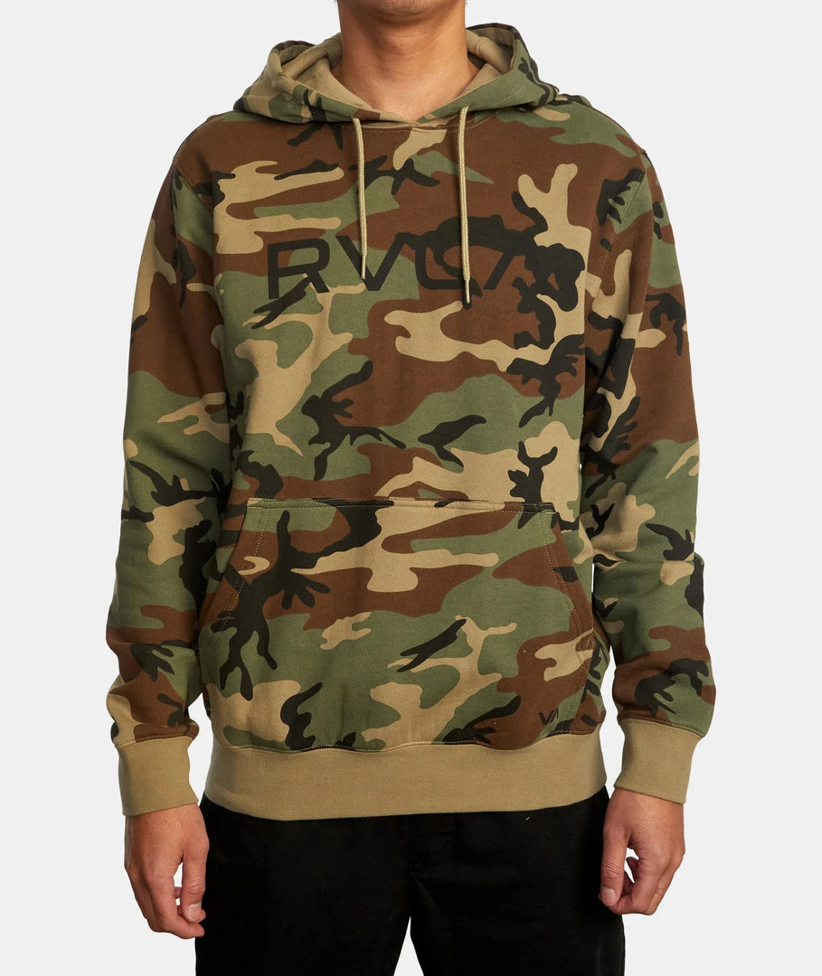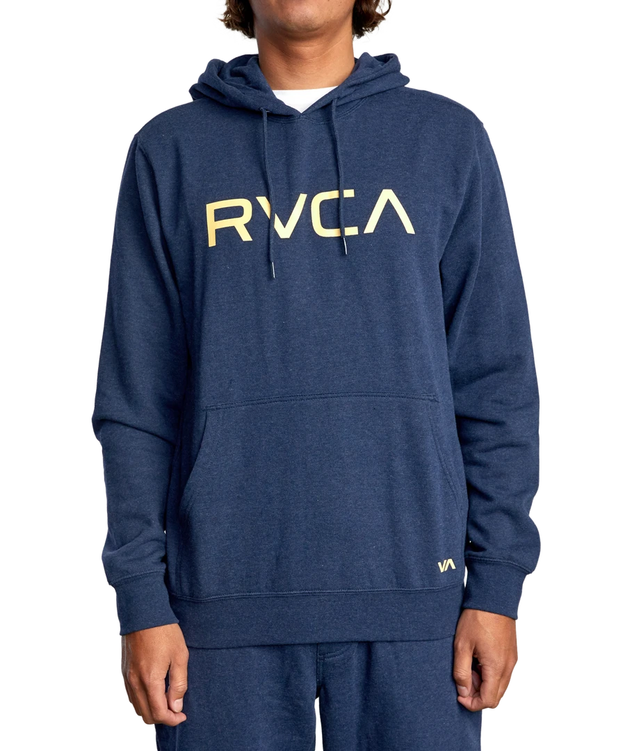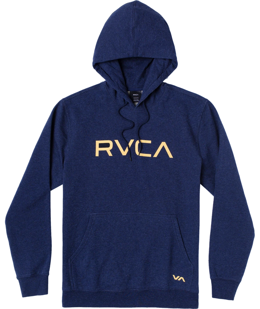 The Big RVCA Pullover Hoodie offers up a staple hooded fleece, backed by a signature RVCA logo print. An everyday essential, the mens sweatshirt holds down a classic with a hooded pullover cut, drawcords at the hood, a pouch pocket and rib knit at the cuffs and hem. The staple fleece is topped with a large RVCA print at the center chest and VA print at the pocket.