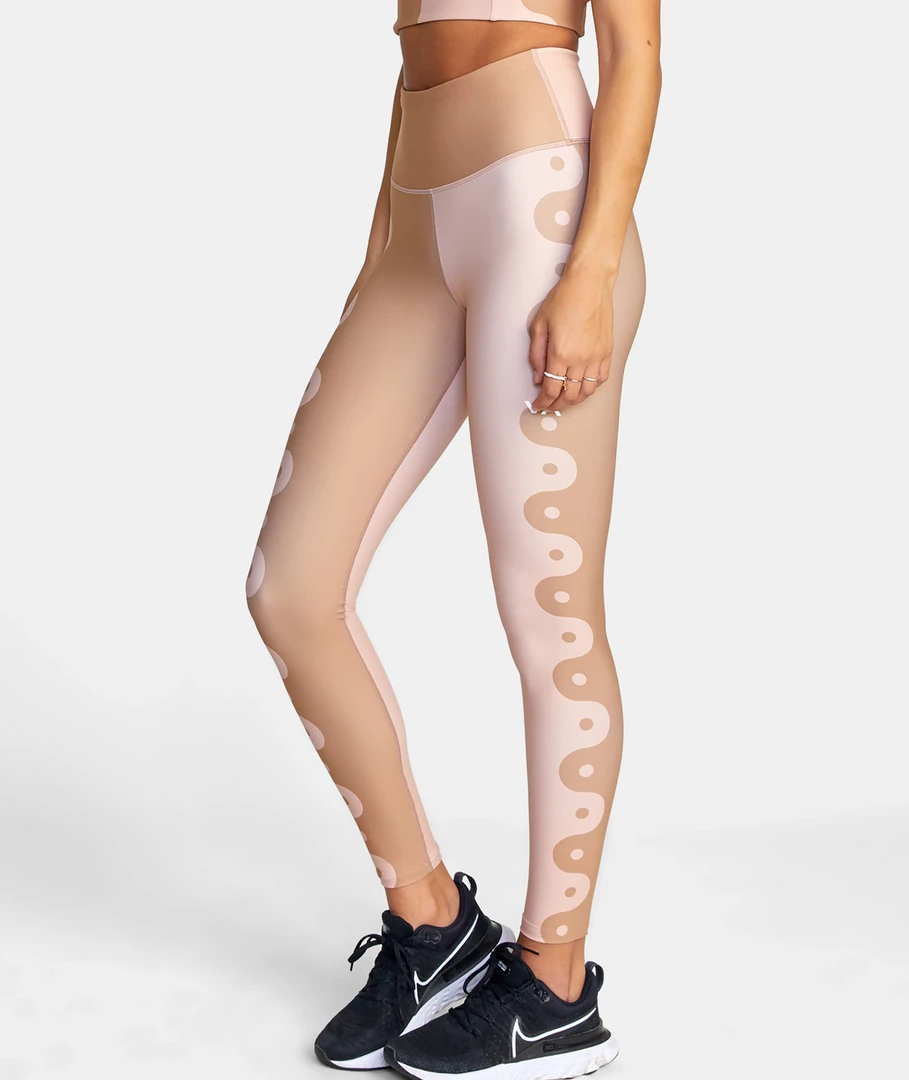 Feed your yang with bright color and bold prints-made with quick-drying and moisture-wicking fabric, the linear yang legging from our women’s VA Sport Collection Keeps you feeling fresh, dry and comfortable, with a high-rise waist and contour seaming. These workout leggings flatter your shape while offering superior mobility. Â