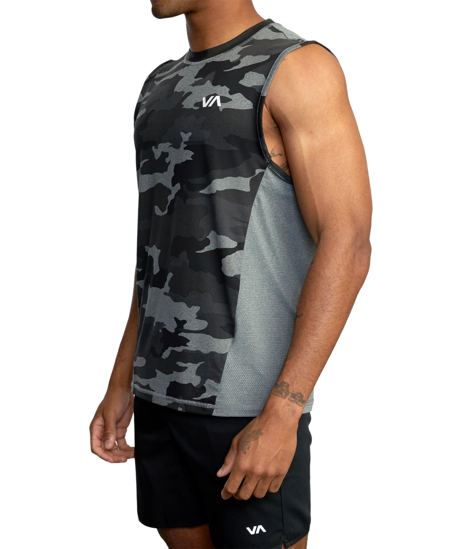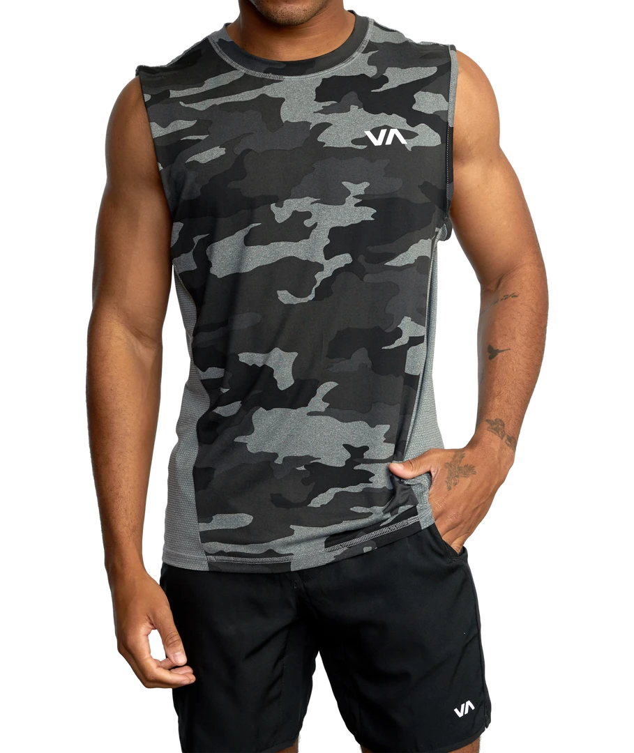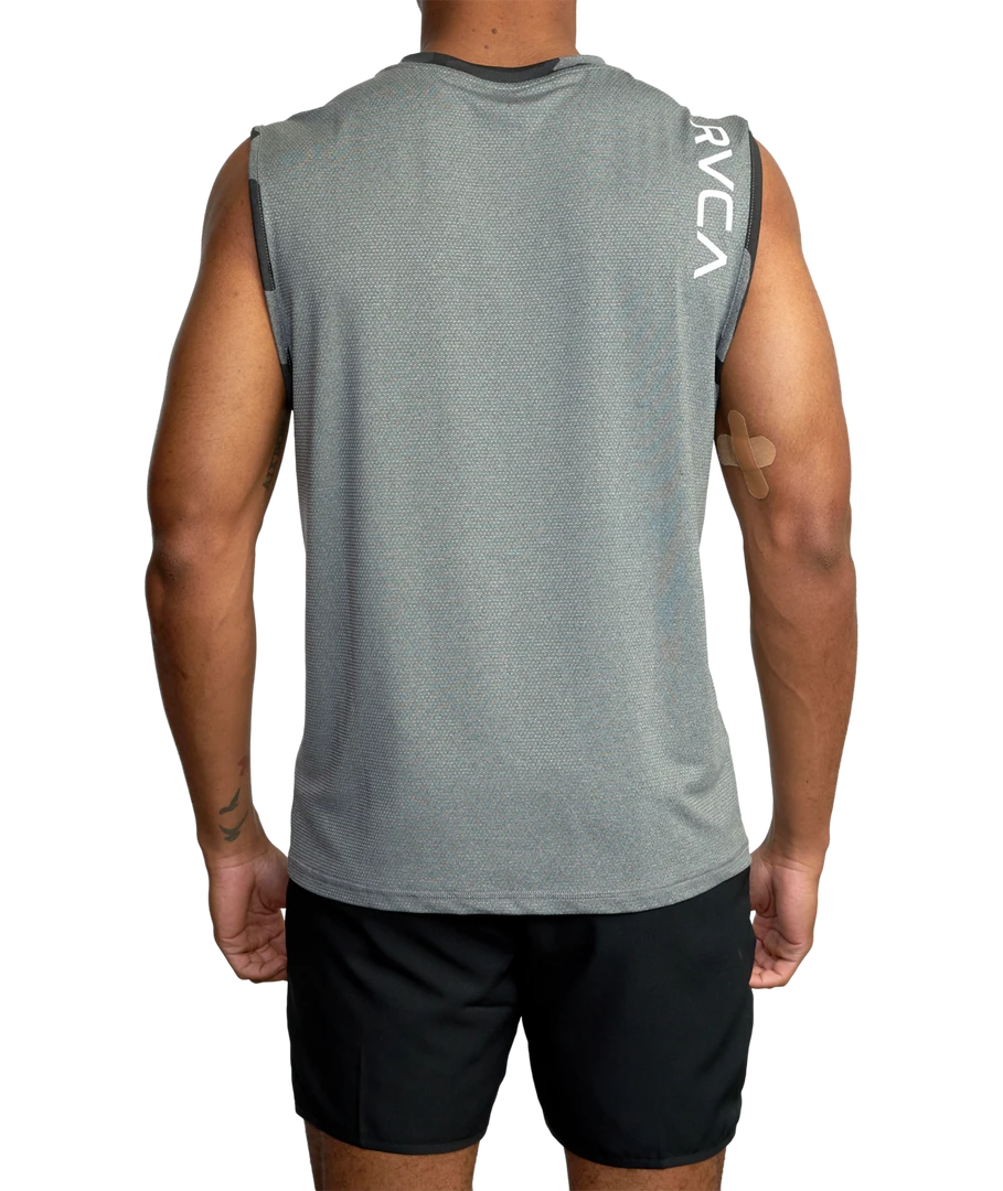 When it’s too hot for sleeves, the RVCA Sport Vent Muscle Tank Top has you covered. This poly stretch tank top features mesh gussets at the sides and back, a crew neckline and RVCA VA prints throughout. Â