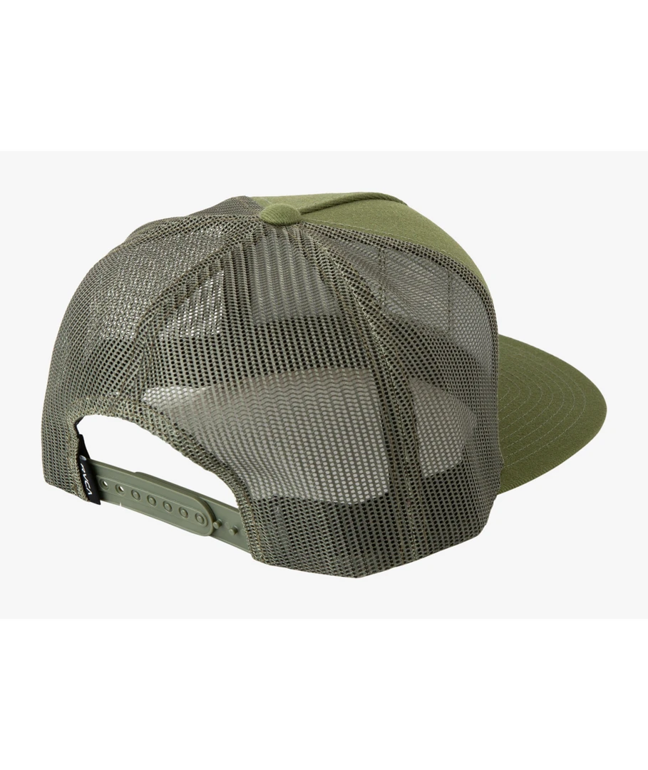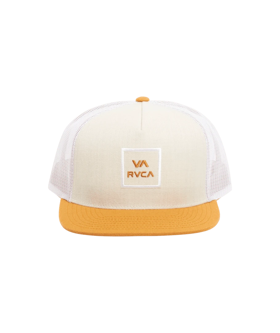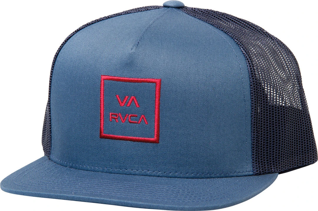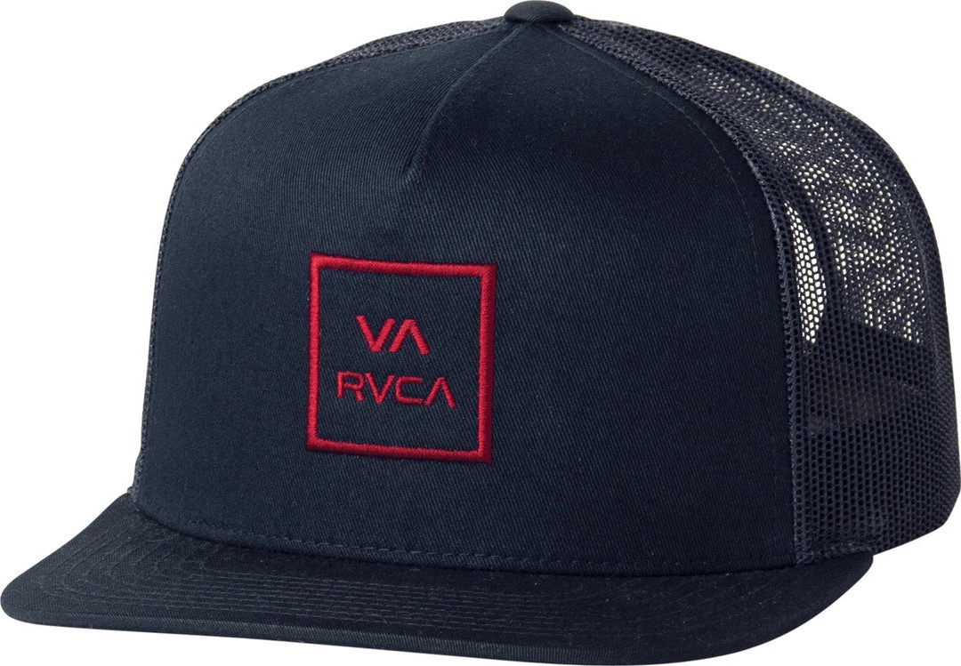 Combining heritage design and modern comfort in one, the RVCA VA All The Way Trucker hat keeps you covered in style. This mid-fit trucker hat features 5-panel construction with a structured front and mesh back panels, adjustable snap closure, flat brim and VA RVCA branding throughout. Â