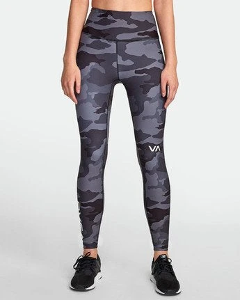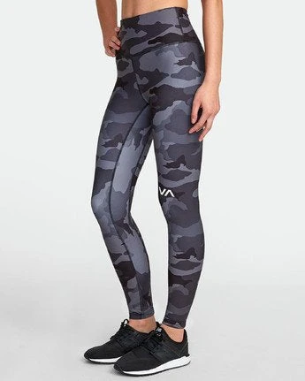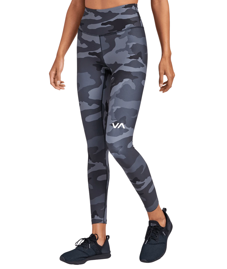 The RVCA Sport High Rise Legging lets you bob, weave, squat and sprint, sans adjustments thanks to a contoured high waisted cut and performance stretch material. Made for limitless movement, the high waisted legging trains with you, offering 4-way stretch and moisture wicking fabric. Available in camo print or solid with printed logos. Â